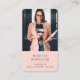 Modern professional notary business card featuring a photo against a dusty peach pink background. The reverse side features the contact info and business name, social media and QR code. You can customise the text size, font, to fit your own personal style. Replace this sample place holder photo with your own portrait orientation business card. A peach pink background on the front and back of the card.
