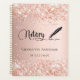 A chic rose gold, blush background, decorated with a feather pen. Personalise and add a name and year(s). Black text: Notary