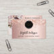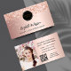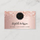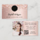 An elegant and glamourous business card on a rose gold gradient background decorated with confetti on the front. Elegant hand lettered style script. Personalise and add Your business logo, name, text, profile photo, contact info and your own QR code to your website address.