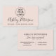 An elegant modern, stylish notary business card with elegant modern simple hand lettering style typography in white on a minimalist elegant pastel blush pink trendy and elegant background. all text is customisable, add your social media. Add or remove your logo.