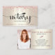 Present your best self to your clients. Black, fancy handwritten script typography with feather pen and pink rose gold glitter drips overlay a faux metallic champagne gold ombre background. On the back, your custom photo on the left side and modern sans serif typography overlaying a faux metallic champagne gold ombre background on the right. Personalise with your full name and business info on the front. Fill in the back side with the photo of your choice and your phone numbers, address, email, website, and other information. Makes a chic, professional, and stylish statement wherever you go.