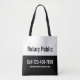 This business tote bag is black and white. You can edit the text to meet your needs. You can add your service/company name, phone number, email address, or custom message. The top half is white with black text. The bottom half is black with white text for the company's phone number and email address.