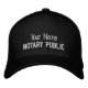Advertise your notary public business with style and pride, even while running errands around town. Personalised baseball cap makes a thoughtful gift for any notary professional or loan signing agent who provides legal services to the public. Embroidered cap features a white thread design, suitable for black or dark-coloured backgrounds. Experiment and choose from a wide variety of fonts and thread colours. Customise by changing "Your Name" to a name, location, or any other text of your choice. For long names you may need to adjust text size down.