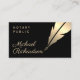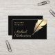 Minimalist elegant classy and professional style with dark colours and gold tone text and ink pen feather. Background and text colours, positions and sizes of all elements are editable in Edit option.