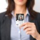 Professional Notary Public ID badge with a profile photo and accreditation symbol. This editable template can be personalised with a name, credentials, and commission, along with a certification mark or your company logo for branding. Additional information and a QR code can be included on the back. This classic design blends both traditional and contemporary features, creating an elegant yet friendly appearance. It offers fully customisable text to fit your business brand. Perfect for a Notary Public, Loan Signing Agent, Certified Notary Trust Delivery Agent (CNTDA), Mobile Notary, Apostille or other legal professional. Printed colours: black, white and gold colour. Shop the online collection for more popular product ideas and supplies designed for notaries!