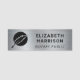 Modern professional notary public name tag on a brushed silver faux metallic background. Keep the notary pen logo or upload your logo instead. Add your name and title in simple typography.