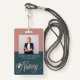 Modern Notary Loan Signing Agent ID Badge. Design features single photo, typography script ''Notary'' and a name on the front and contact details and qr code on the back.