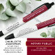 Promote your notary business with stylish, custom ink pens! This editable template can be personalised with your name, service, telephone number, and website. Perfect for a Notary Public, Loan Signing Agent, Certified Notary Trust Delivery Agent (CNTDA), Mobile Notary, Apostille or other legal professional. Printed colours: dark burgundy, white and gold colour. Shop the online collection for more popular product ideas and supplies, designed for notaries!