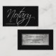 An elegant script typography ,modern, stylish notary business card with stylish script hand lettering style typography in faux silver foil on a simple customisable black background. If you need any customisation, don't hesitate in contacting me