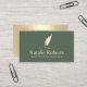 Notary Signing Agent Sage Green & Gold Quill Logo Business Card