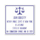 Professional notary stamp with black scales of justice symbol and easy personalizable text.