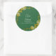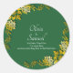Note + Bride Groom Names Emerald Green & Gold Classic Round Sticker