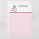 Stationery with a grey stethoscope and a little red heart. Personalised with: A note from the nurse with your name and credentials. A light pink background.