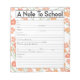A Note to School Notepad, Student Excuse Pad, School Excuse Pad, A Note to the Teacher Pad, School Notes, School Notepad, Absence Note This fill in the blank notepad will make life much easier by saving you time! Teachers love these easy to read notes! This notepad can be used for multiple children since you can fill in the blanks to suit your needs. A must have for all parents of school-aged children! Several patterns to choose from! *********************ABOUT ME********************* I am a single mum and a middle school teacher. I appreciate your purchase as it enables me to continue my hobby of providing fun products for all who are interested!