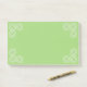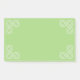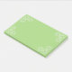 Lime green background is enhanced with patterned corners. Three blocks of interlocking squares frame each corner. The pattern gives three shades of the chosen background colour (lime green).