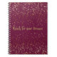 Notebook shown with a graphic of petite stars in golden on a plum-wine background with the phrase " reach for your dreams". Customise this item and change the name to yours or take off the name and buy as is. Golden and Plum Wine colourings.