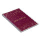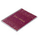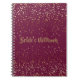 Notebook shown with a graphic of petite stars in golden on a plum-wine background with the phrase " Bride's Notebook". Customise this item and change the name to yours or take off the name and buy as is. Golden and Plum Wine colourings.