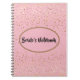 Notebook shown with a graphic of petite stars in golden on a pink background with the phrase " Bride's Notebook" inside an oval shape. Customise this item and change the name to yours or take off the name, change the star colours in filter, background colour or buy as is. Golden, Pink and Black colourings.