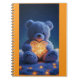 The notebook features an endearing teddy bear graphic, lovingly holding a shiny heart that sparkles in the light.