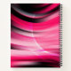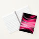 This notebook is shown in a regular shape with college rule pages in a textured art print in colours of black and pink.