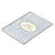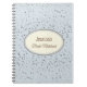 Petite stars in silver-grey grace the cover of this custom name bride's notebook. Shown in a soft Dusty Slate Blue with a Ivory oval and coordinating border colours of Ash, White and Rain along with fun and fanciful text of your personalised name in centre and the phrase "Bride Notebook" in Chocolate Brown. Customise this item.