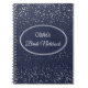 Notebook shown with a graphic of petite stars in silver-grey on a midnight blue background with the phrase " Bride's Notebook" encircled by an oval with borders of coordinating colours. Customise this item and change the name to yours or take off the name and buy as is. White, Silver-grey and midnight blue colourings.