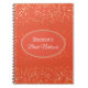 Notebook shown with a graphic of petite stars in golden on a tangerine orange background with the phrase " Bride's Notebook" inside an oval shape with coordinating borders. Customise this item and change the name to yours or take off the name, change the star colours in filter, background colour or buy as is. Golden, white and tangerine colourings.
