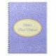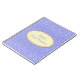 Notebook shown with a graphic of petite stars in grey on a periwinkle background with the phrase " Bride's Notebook" inside an oval shape with coordinating borders of peach and white. Customise this item and change the name to yours or take off the name, change the star colours in filter, background colour or buy as is. Grey, Ivory, Periwinkle, Peach.