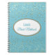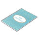 Notebook shown with a graphic of petite stars in golden on a sky blue background with the phrase " Bride's Notebook" inside an oval shape with coordinating borders. Customise this item and change the name to yours or take off the name, change the star colours in filter, background colour or buy as is. Golden, white and sky blue colourings.