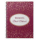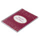 Notebook shown with a graphic of petite stars in golden on a plum-wine background with the phrase " Bride's Notebook" inside an oval shape with coordinating borders. Customise this item and change the name to yours or take off the name, change the star colours in filter, background colour or buy as is. Golden, white, plum-wine colourings.