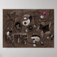 A brown background with black, white, and blue doodles gives this poster a grunge, rebellious graffiti look.