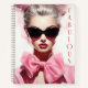 Make a bold statement with this chic personalised notebook, featuring a stunning fashion illustration on the front cover. The model, with sleek platinum hair, dramatic dark sunglasses, and pouty lips, exudes high-fashion glamour. A large pink bow at her neck complements the soft watercolor brushstrokes, bringing movement and elegance to the design. The back cover is a solid pink, perfectly matching the bow, with space for your personalisation in a sleek white font. The generous area accommodates long first names, making it a perfect gift for fashion lovers and beauty enthusiasts who want to add a personal touch to their style.