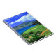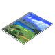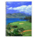 Notebook is shown with a photo print of a beautiful golf course in the tropics.