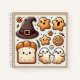 Halloween-esque witch hat and ghost-shaped cute bread and cookie design notebook