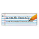 School teacher's custom name tag done in a white, with blue ruled notebook paper looking background. Clip art of then end of a pencil, decorates the right side of the name tag. Two areas of black text are ready to personalise for your needs.