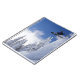 Notebook shown with a photo print of a winter scene and snowboarder. Customise this item or buy as is. Stock Image