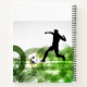 This notebook is shown in a regular shape with lined pages in a sports soccer print design.