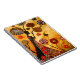 A beautiful notebook featuring a unique and colourful cover in the style of aboriginal art. With an African woman in traditional dress holding up flowers to the sky with butterflies, large circles, and swirls across the background, as she dances in the flowers. The picture features african patterns on her dress and tree branches in red, white, yellow, and brown colours.
