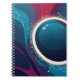 notebook with spiral, notebook with paper, notebook with cover, notebook with picture, cosmic design notebook, abstract art journal, blue and red patterns, modern stationery, vibrant writing notebook, unique gift for artists.