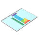 Notebook featuring periodic table of the elements, with each element group marked in rainbow colours.