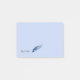 Feather pen. "My Scribbles" is written in script at lower left corner. The writing implement is a feather with various shades of blue, from dark to light. Background is light blue.
