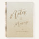 Gradient watercolor golden tan background, with modern chic gold script typography "Notes and Musings" to inspire your creative ideas and thoughts, personalised with your name on the front and your monogram with name on the back. Add your own information by following the "Personalise this template" link.