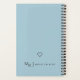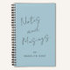 Modern dusty blue notebook, with delicate dark grey script typography "Notes and Musings", to inspire your creative ideas and thoughts... personalised with your name on the front and your monogram with name on the back. Add your own information by following the "Personalise this template" link.