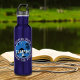 When life gets too much, pack a bag and get away from it all for some rest and relaxation under the stars. That's the inspiration for the camping theme design on this blue stainless steel water bottle. Hit the trail, find a quiet spot and set up camp before nightfall to take in the greatest light show money can't buy. This drinks bottle features a night-time camping scene in blue, black and white and Nothing Beats Camping Under the Stars text. Happy hiking.