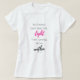 White t-shirt with black fonts and a pop of hot pink.