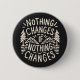 Nothing changes if nothing changes button inspirational lettering. Cosy cabin life aesthetic outfit accessory retro vintage quotes with forest and mountains. Be the change, take action, growth mindset and motivation to stop procrastinating.