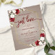 Beautiful and inexpensive burgundy floral geometric on beige rustic wood wedding invitations. Easy to personalise with your details. PLEASE NOTE: The envelopes are NOT INCLUDE; affordable A7 envelopes are available to purchase separately.