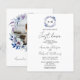 A simple chic monogram watercolor floral purple and blue wedding invitation. Easy to personalise with your details. Geometric wreaths photo wedding invitation, modern boho wedding invitation editable, customisable, calligraphy handwritten font, simple, elegant.
