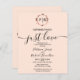 A simple chic foliage rose gold foil monogram peach rose wedding invitation. Easy to personalise with your details. Modern boho wedding invitation editable, wreaths photo wedding invitation, customisable, calligraphy handwritten font, simple, elegant.