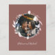 A simple chic foliage faux foil monogram terracotta wedding invitation. Easy to personalise with your details. Modern boho wedding invitation editable, wreaths photo wedding invitation, customisable, calligraphy handwritten font, simple, elegant.
